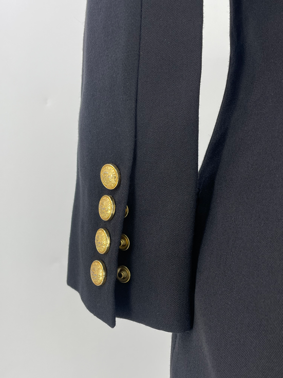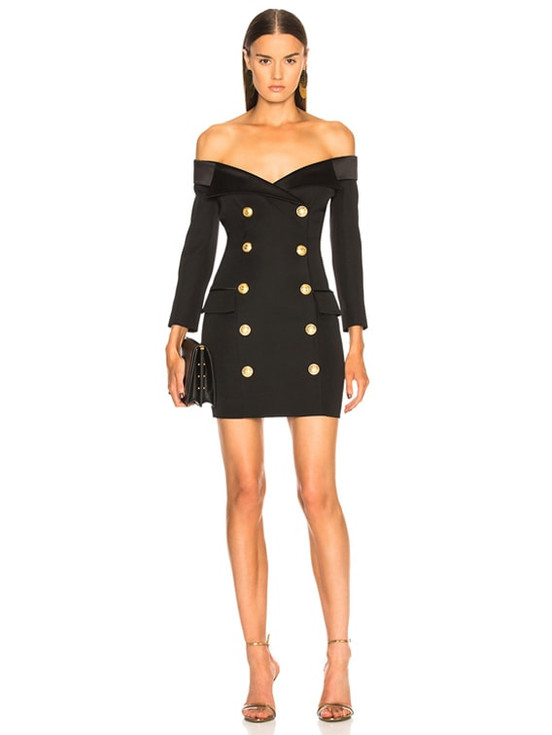 Balmain Iconic off-shoulder blazer dress in very good condition, a tiny scrach a the right arm, Size FR 40 (M) wool / silk fabric , full silk lining